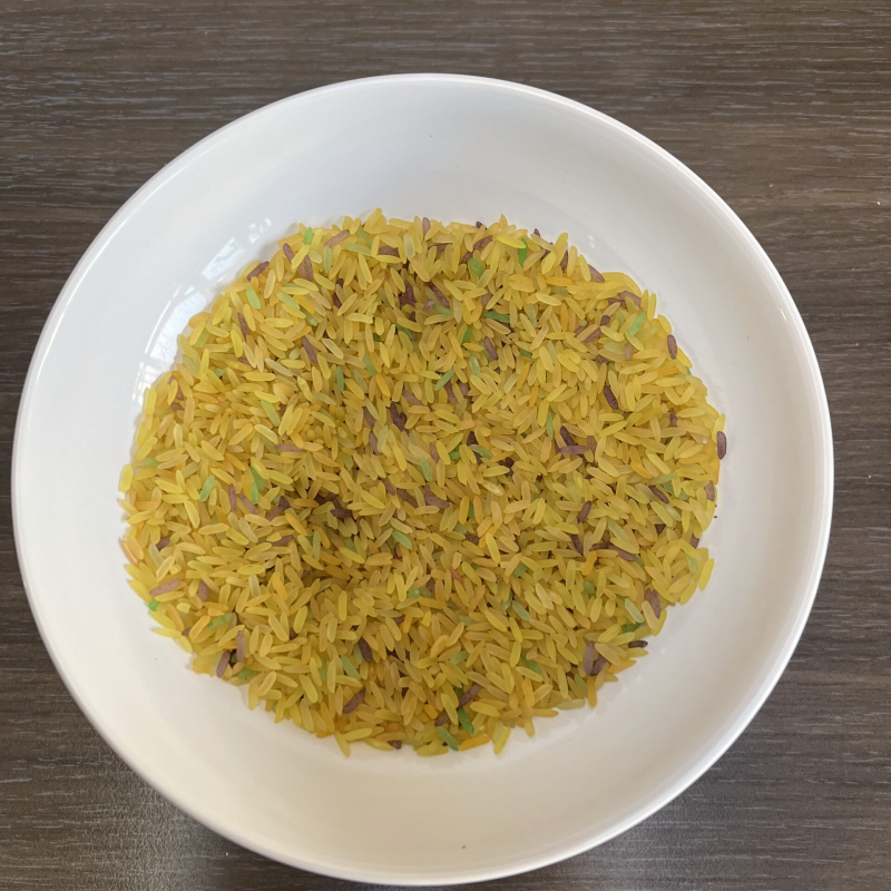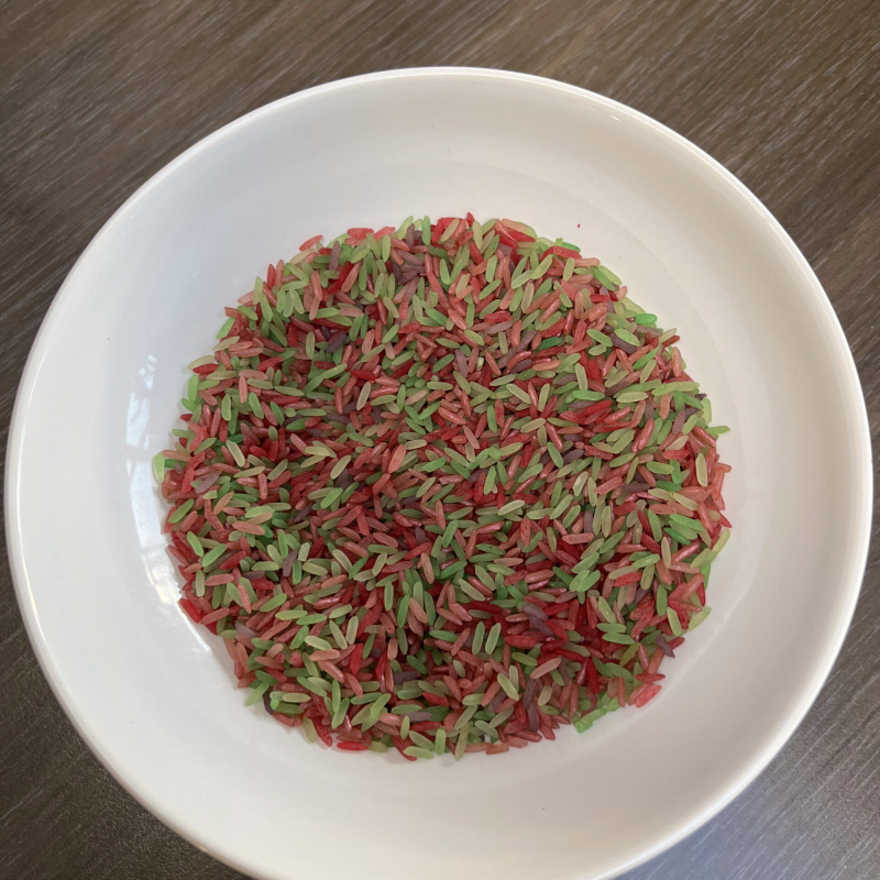 Speelrijst is rijst gekleurd met voedingskleurstof.