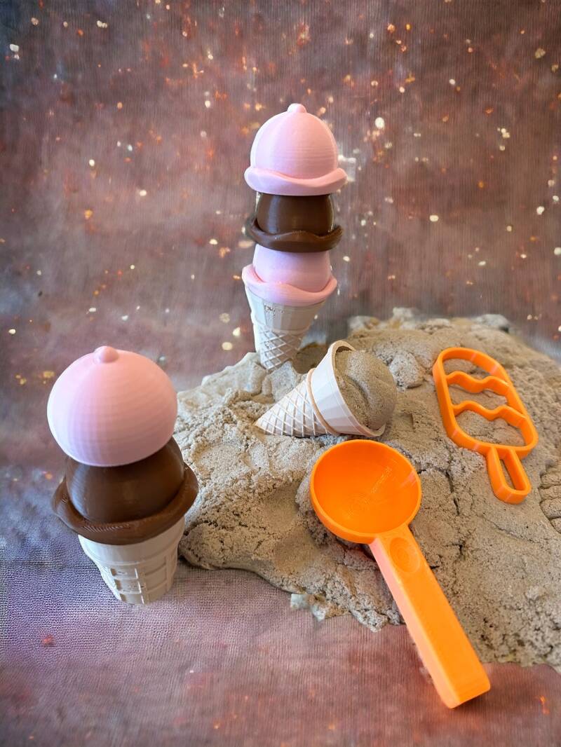 De ijsjes zijn ontworpen om gemakkelijk te stapelen; zitten niet echt vast op mekaar waardoor er toch enige behendigheid moet gebruikt worden om te stapelen. De eerste bol is steeds met een grote ronde opening die netjes op het koekje past. De volgende bollen hebben een holte waardoor ze op elkaar passen.